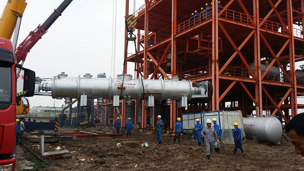 圖為真空連續(xù)干燥機施工現(xiàn)場
